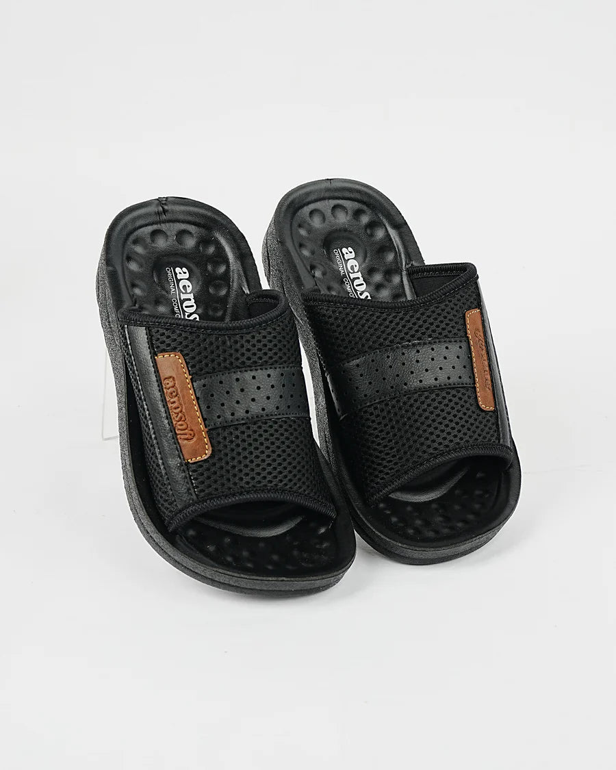 Unwind in style with these men’s relaxed fit slippers, crafted for maximum comfort and durability. Perfect for both indoor lounging and casual outdoor wear, they provide breathable support and timeless design.